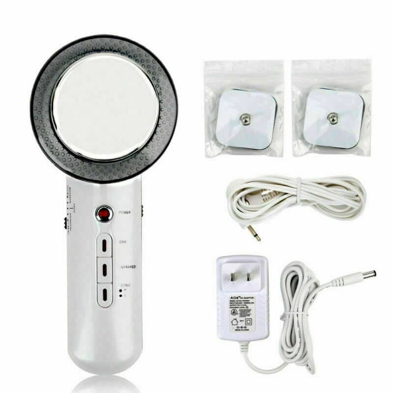 1x masseur à ultrasons, 1x adaptateur secteur, 1x fil, 2x tampon, 1x manuel d’utilisation